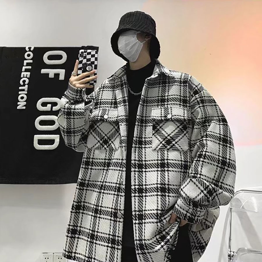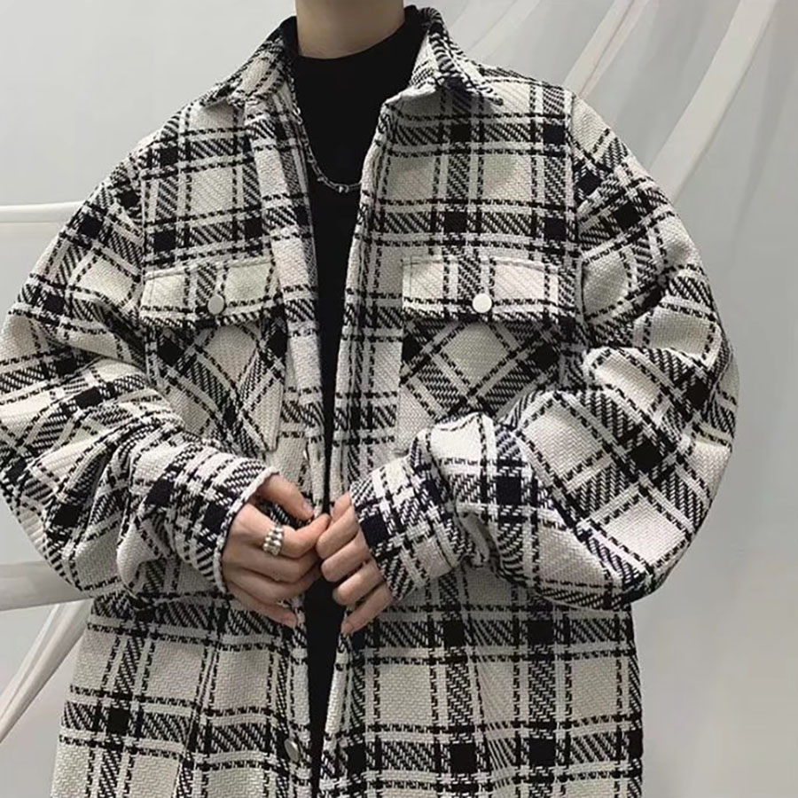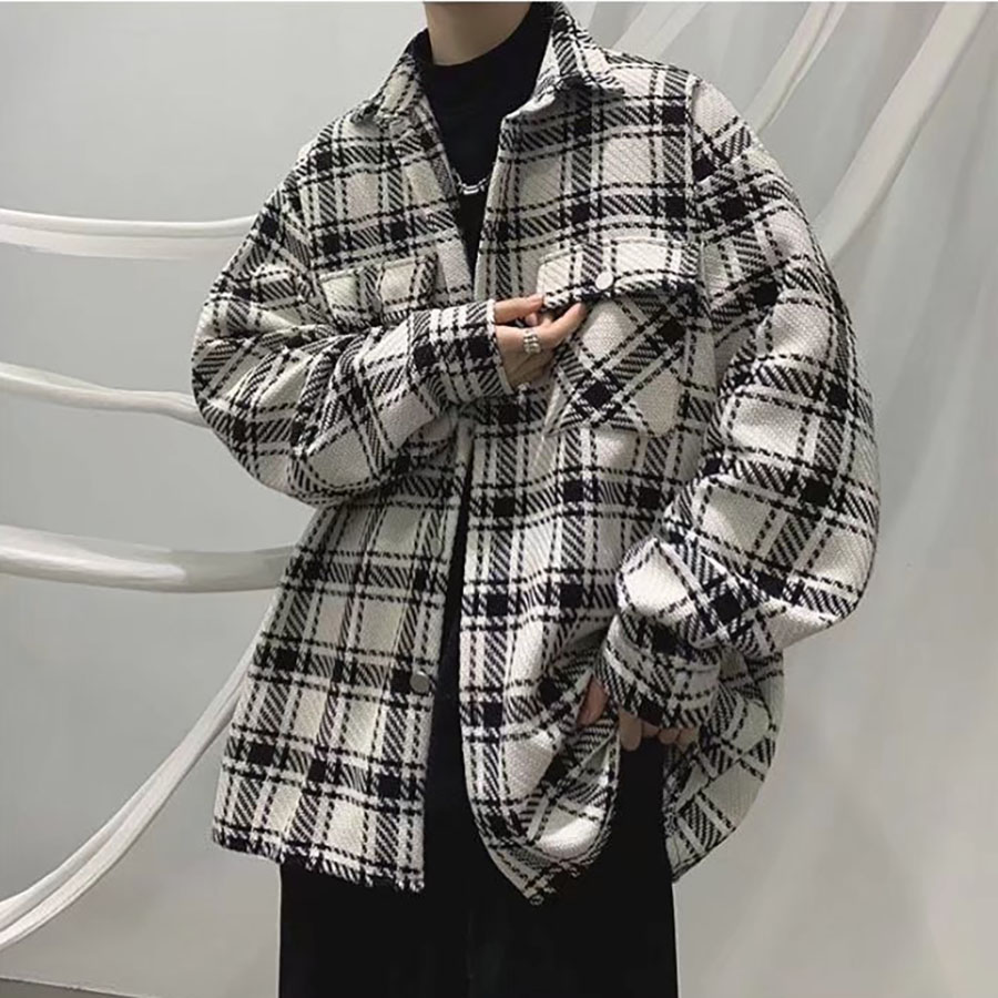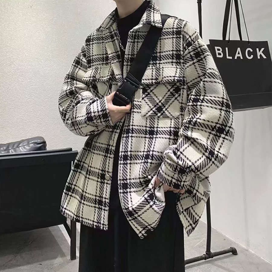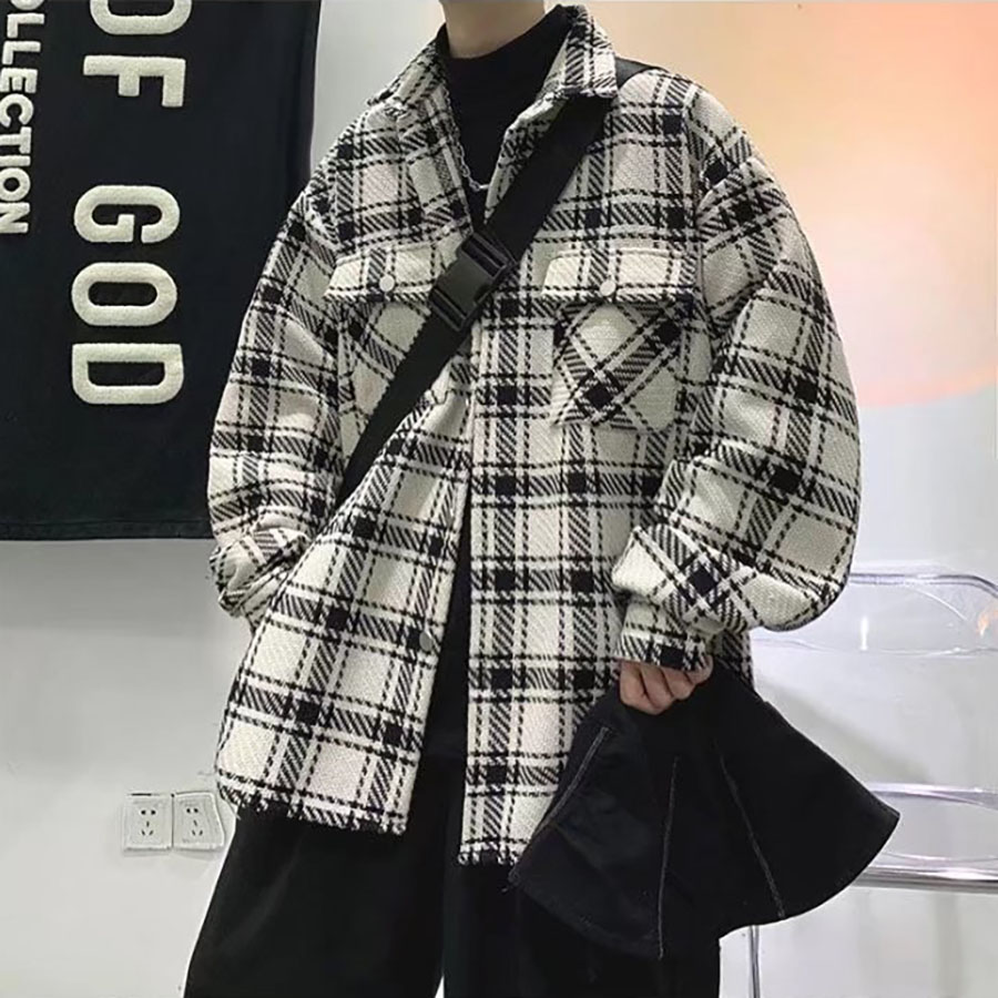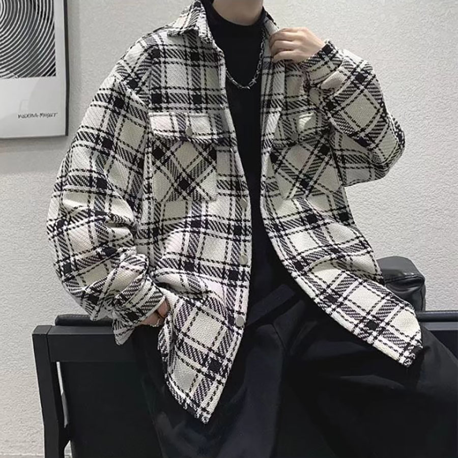 Áo khoác Nam Nữ sọc caro đẹp form rộng – Casual Japanese Jacket in White-Black