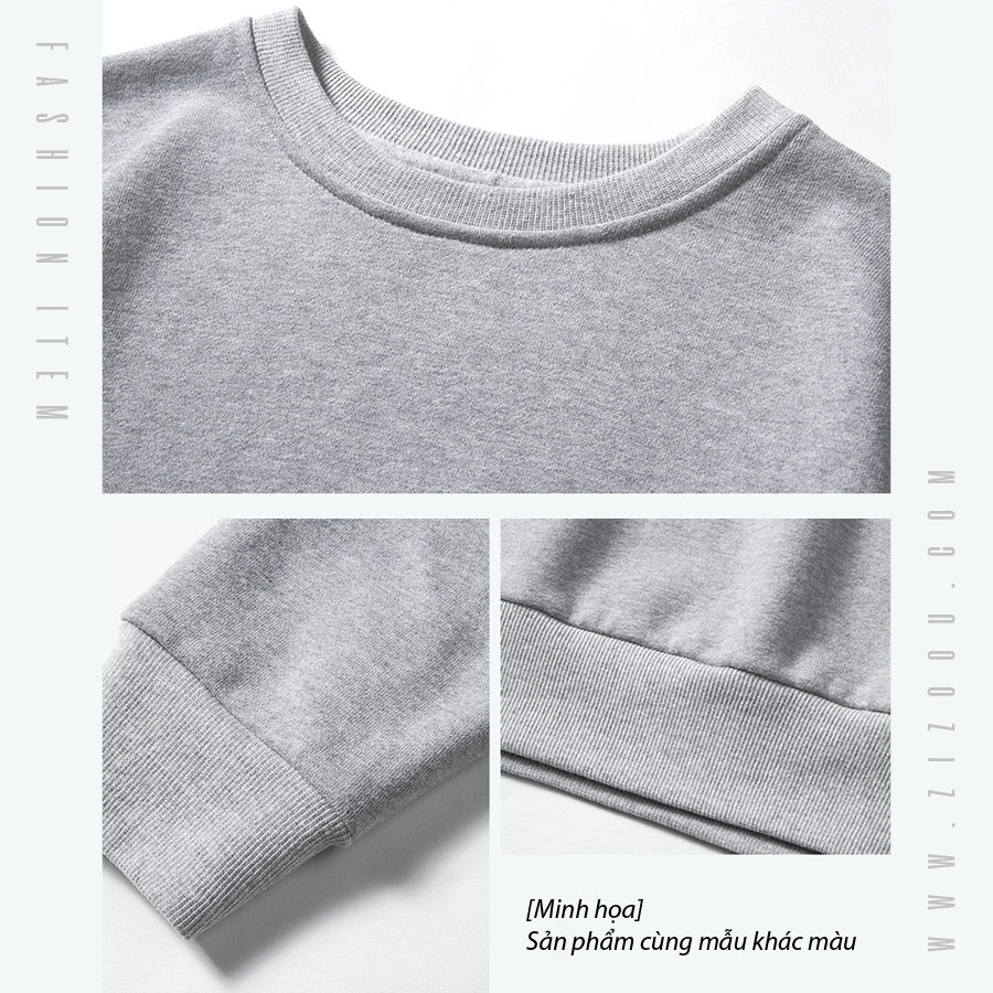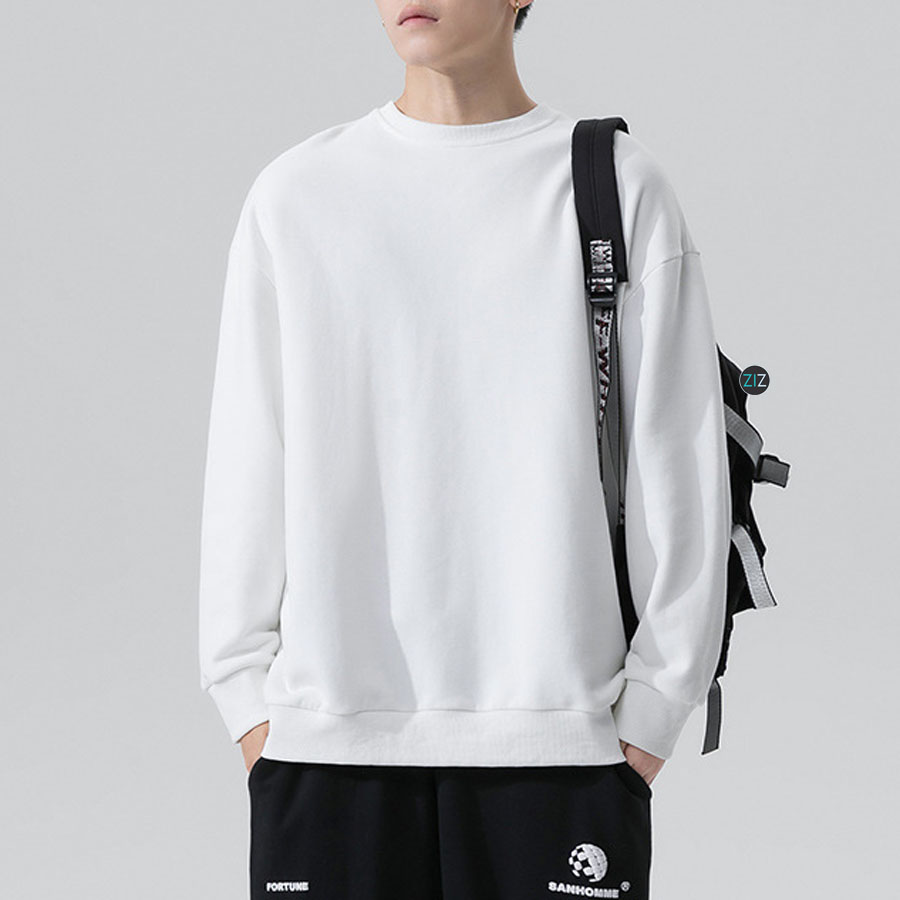Chi tiết Áo Sweater trơn màu trắng, hoodie không mũ: