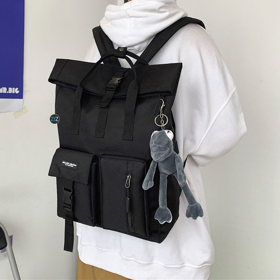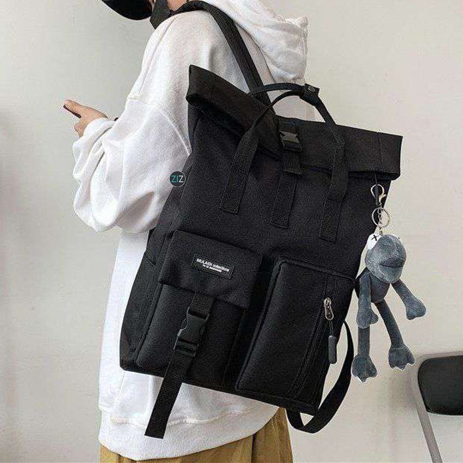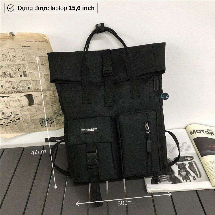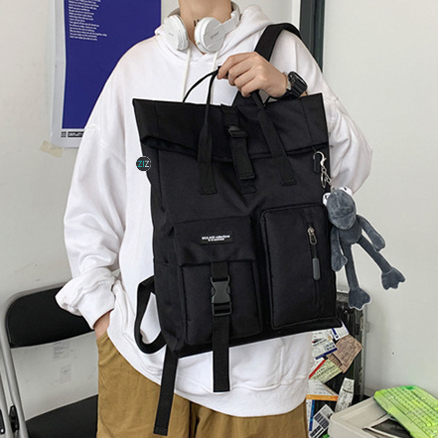- Thiết kế balo gập fold, miệng gấp cuộn dáng vuông chữ nhật hiện đại.